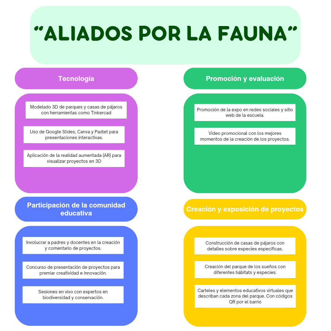Este proyecto educativo y ambiental tiene como eje central la protección y cuidado de la fauna, fomentando un vínculo emocional y respeto por la biodiversidad.