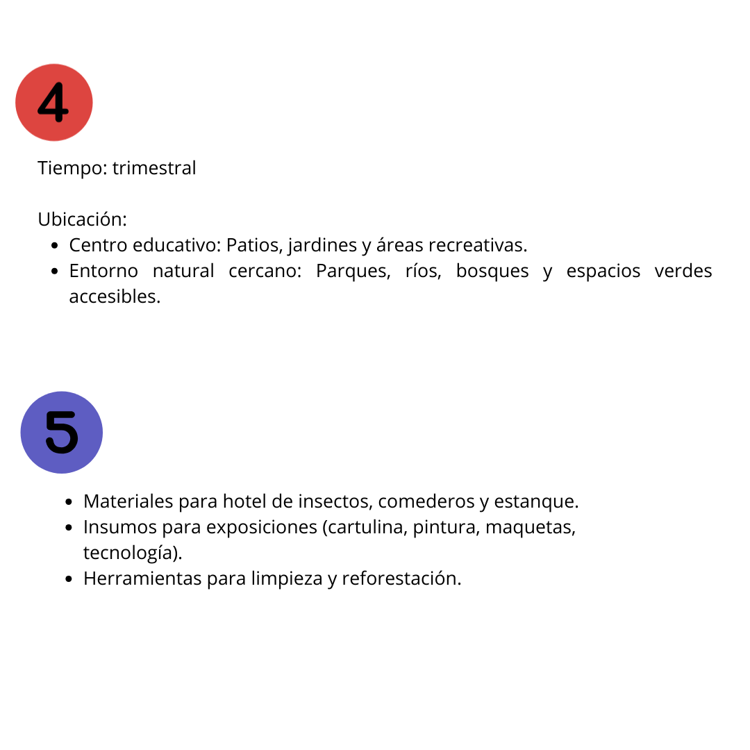 El proyecto propone un enfoque práctico y educativo para sensibilizar a la comunidad escolar sobre el impacto humano en los ecosistemas, desarrollando hábitos sostenibles y construyendo espacios que favorezcan la biodiversidad.